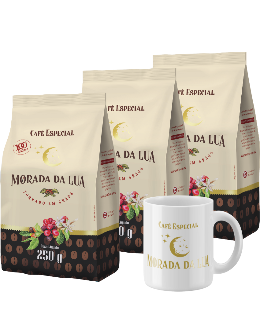 Kit Café em Grãos, 3 pacotes de 250g + 1 Xícara - Morada da Lua