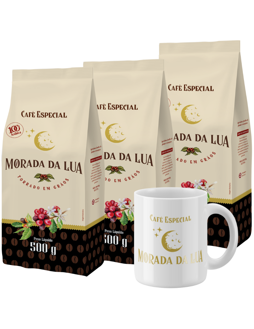 Kit Café em Grãos, 3 pacotes de 500g + Xícara - Morada da Lua